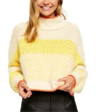 Hooked Up Juniors Striped Mock Neck Sweater Size Small Pink/Yellow NEW NWT